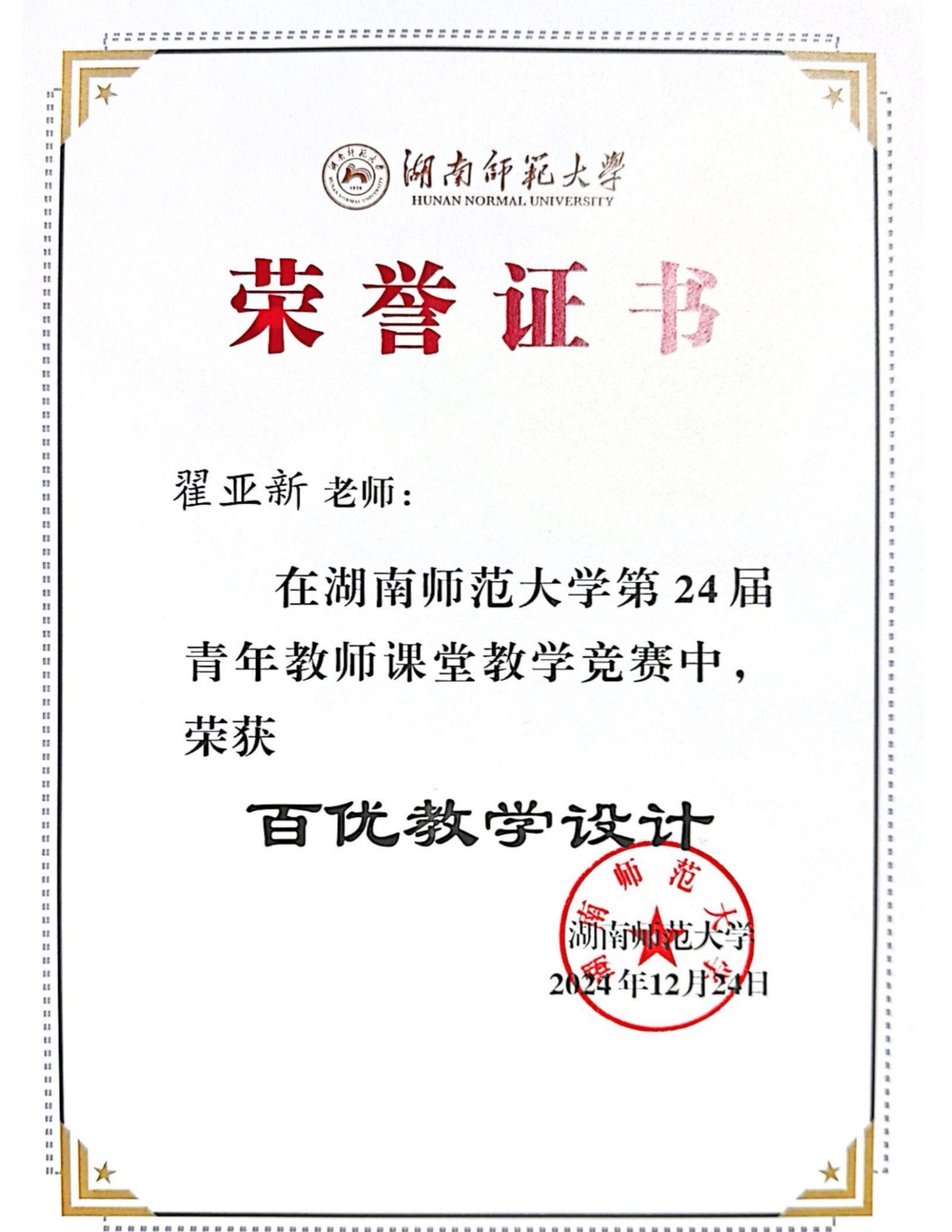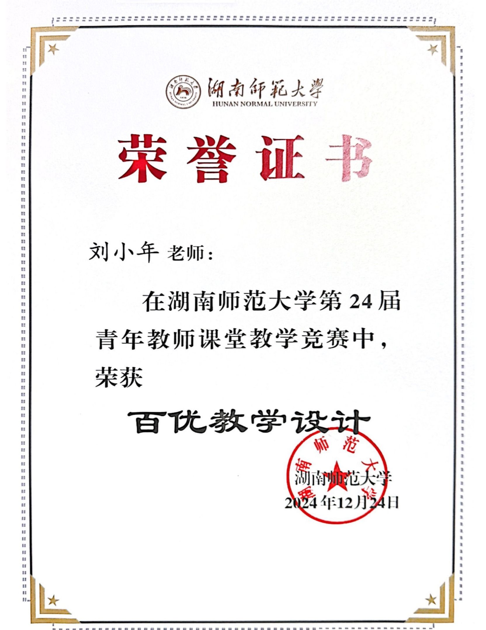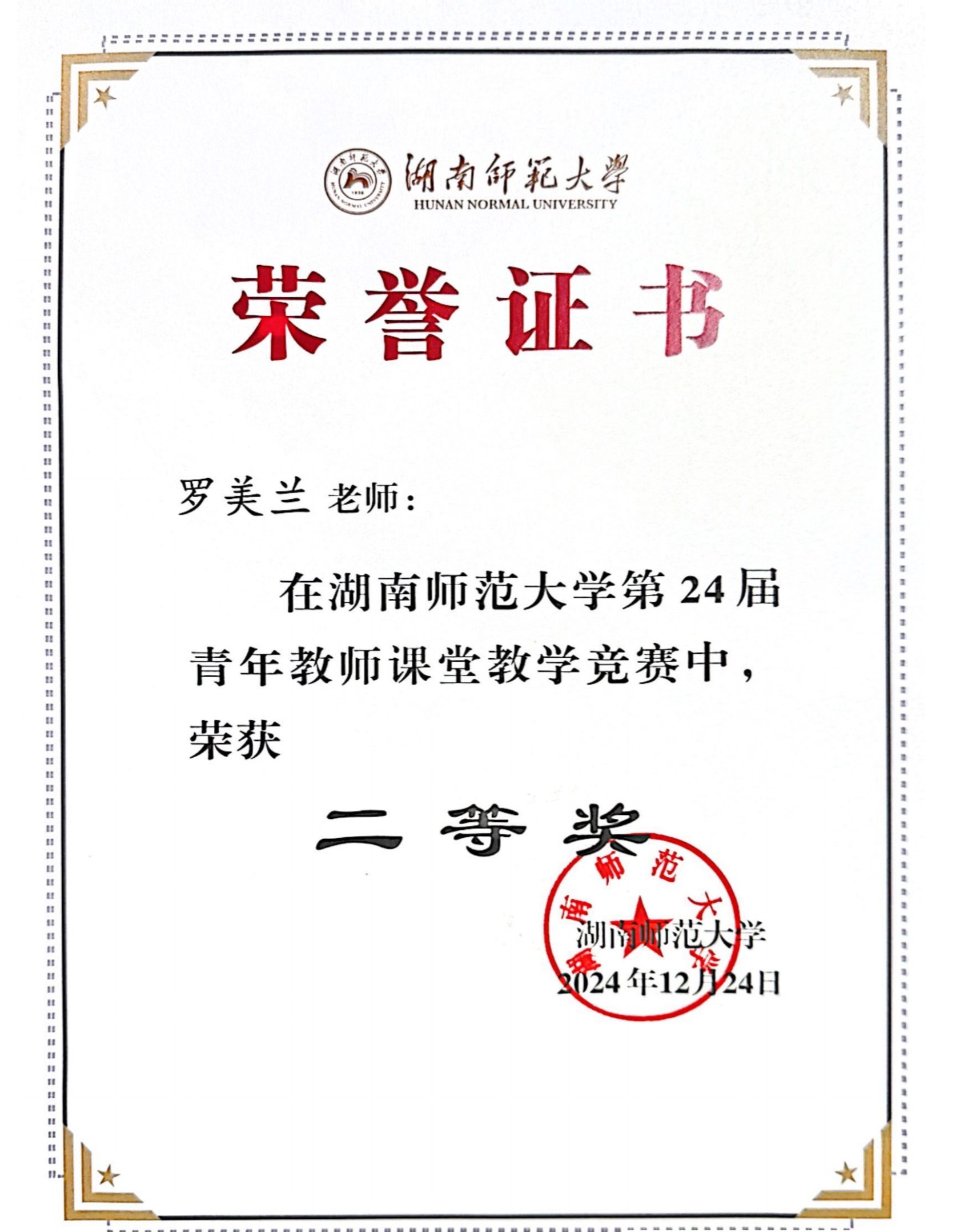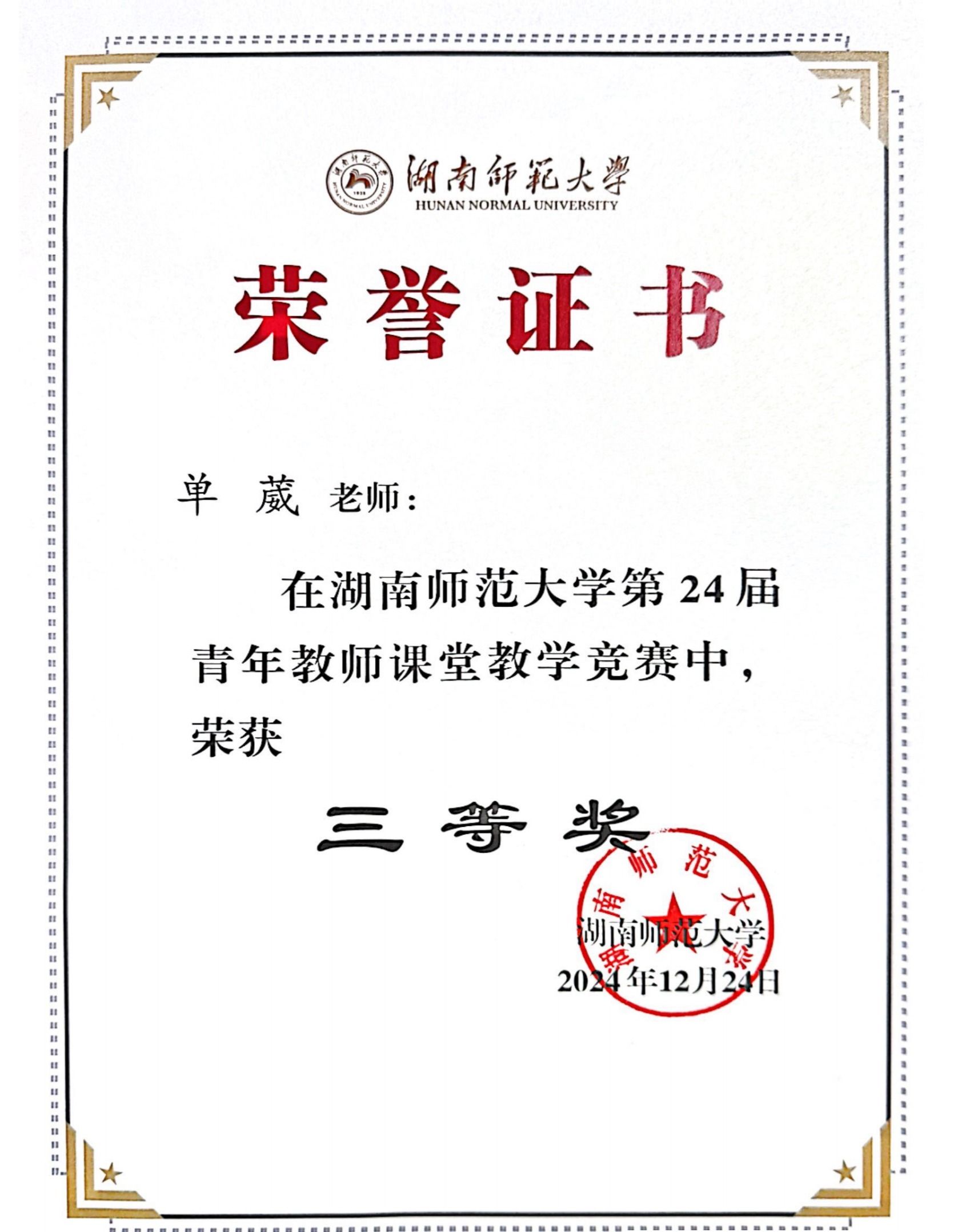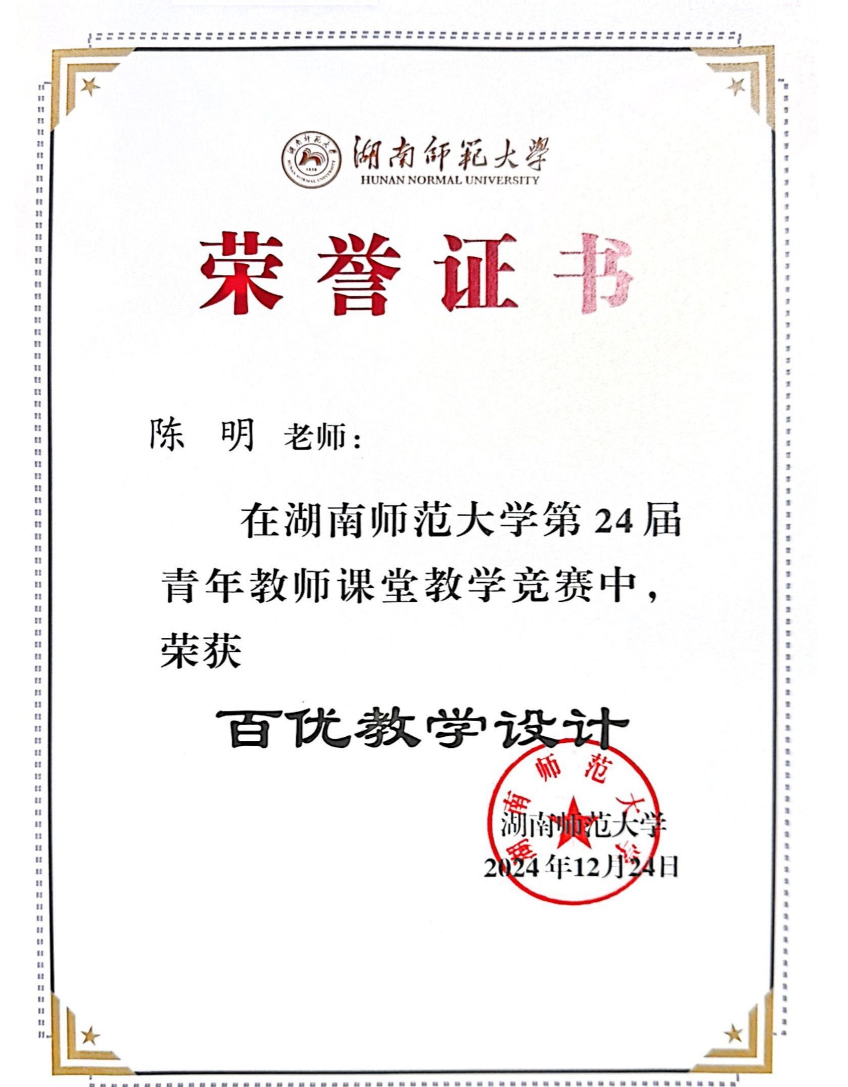 湖南师范大学2024年青年教师赛课获奖