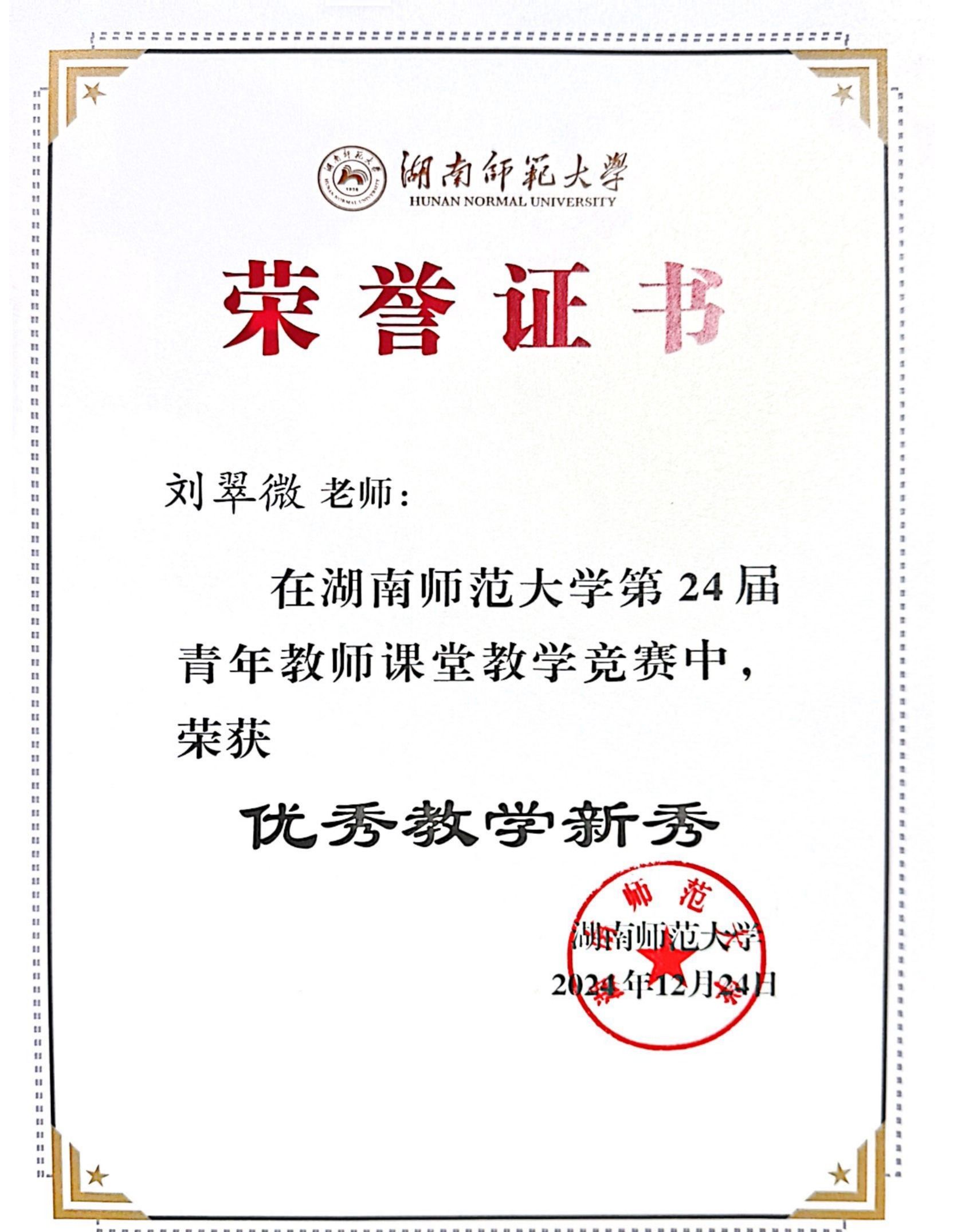 湖南师范大学2023-2024年度教学优秀奖获奖