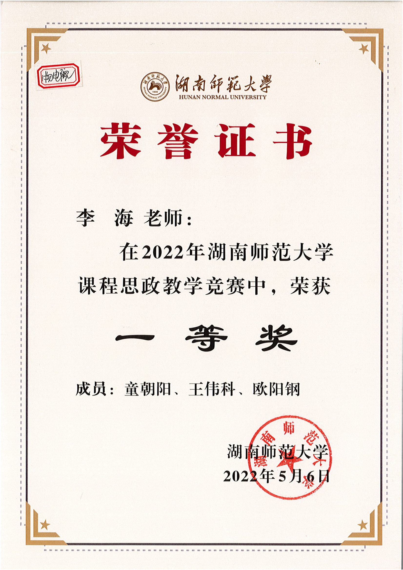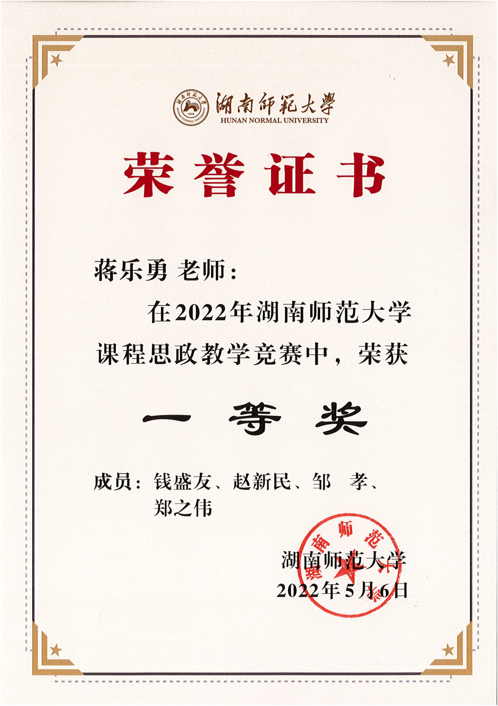 2022年湖南师范大学课程思政教学竞赛获奖