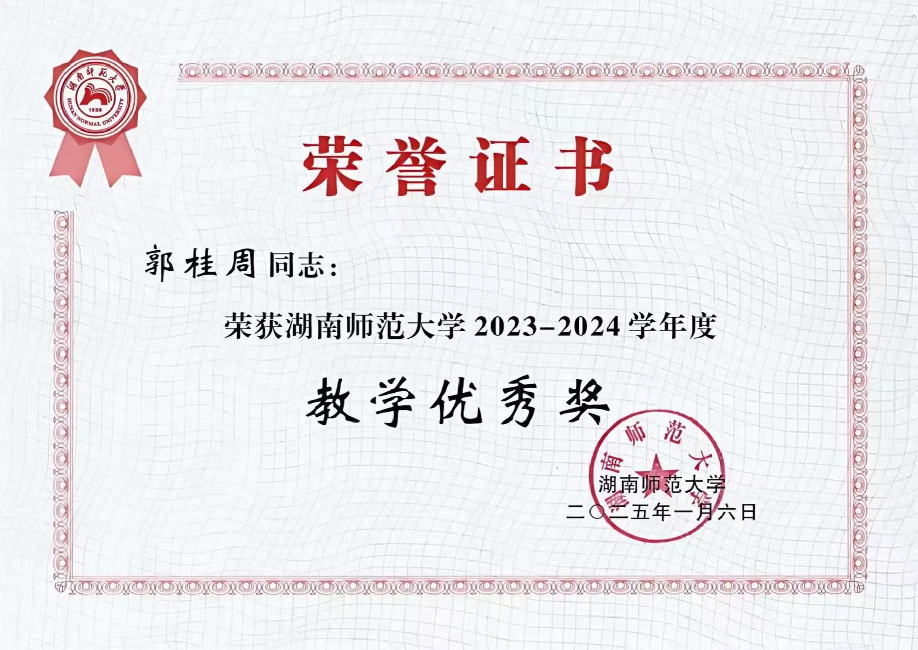 湖南师范大学2023-2024年度教学优秀奖获奖