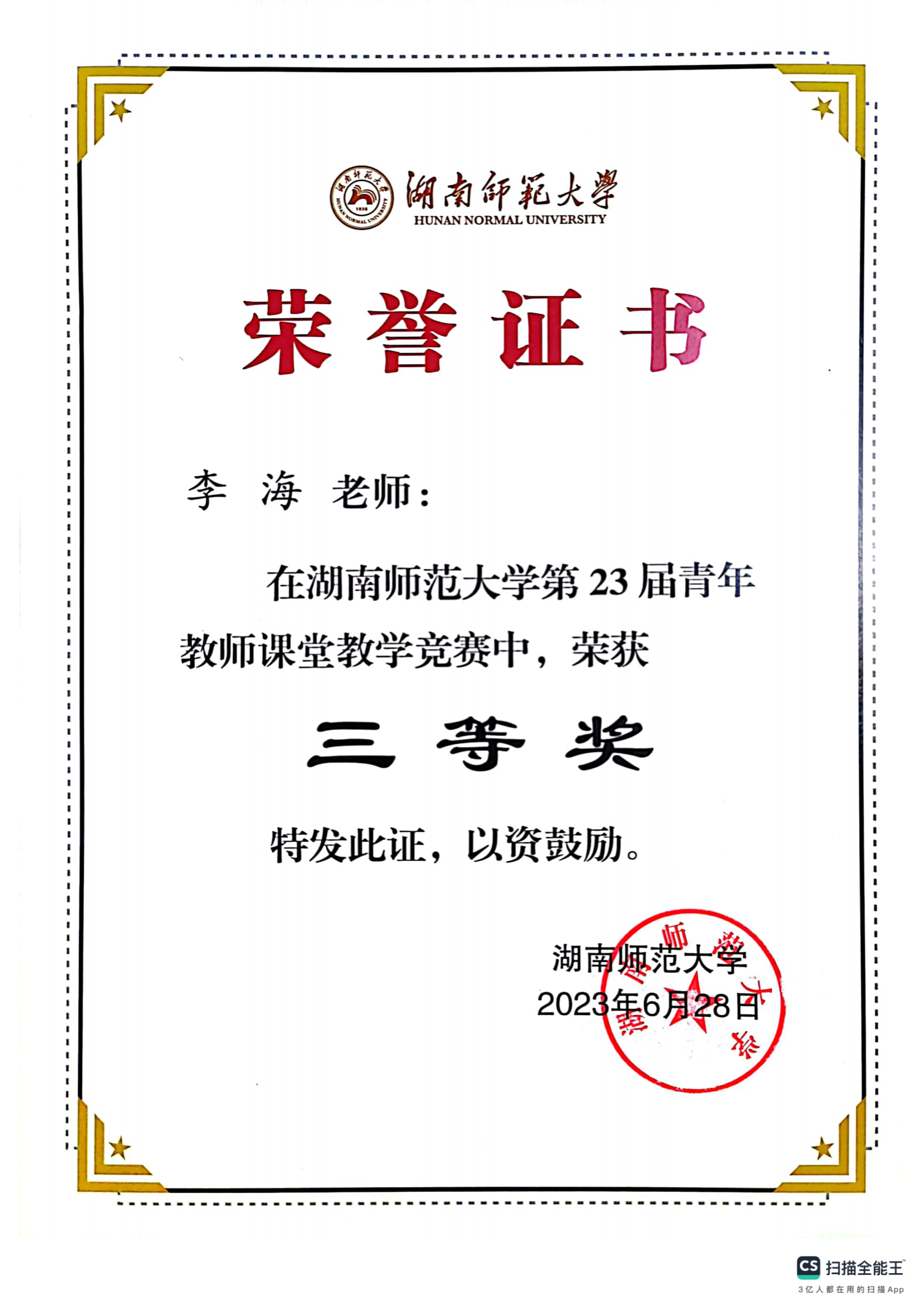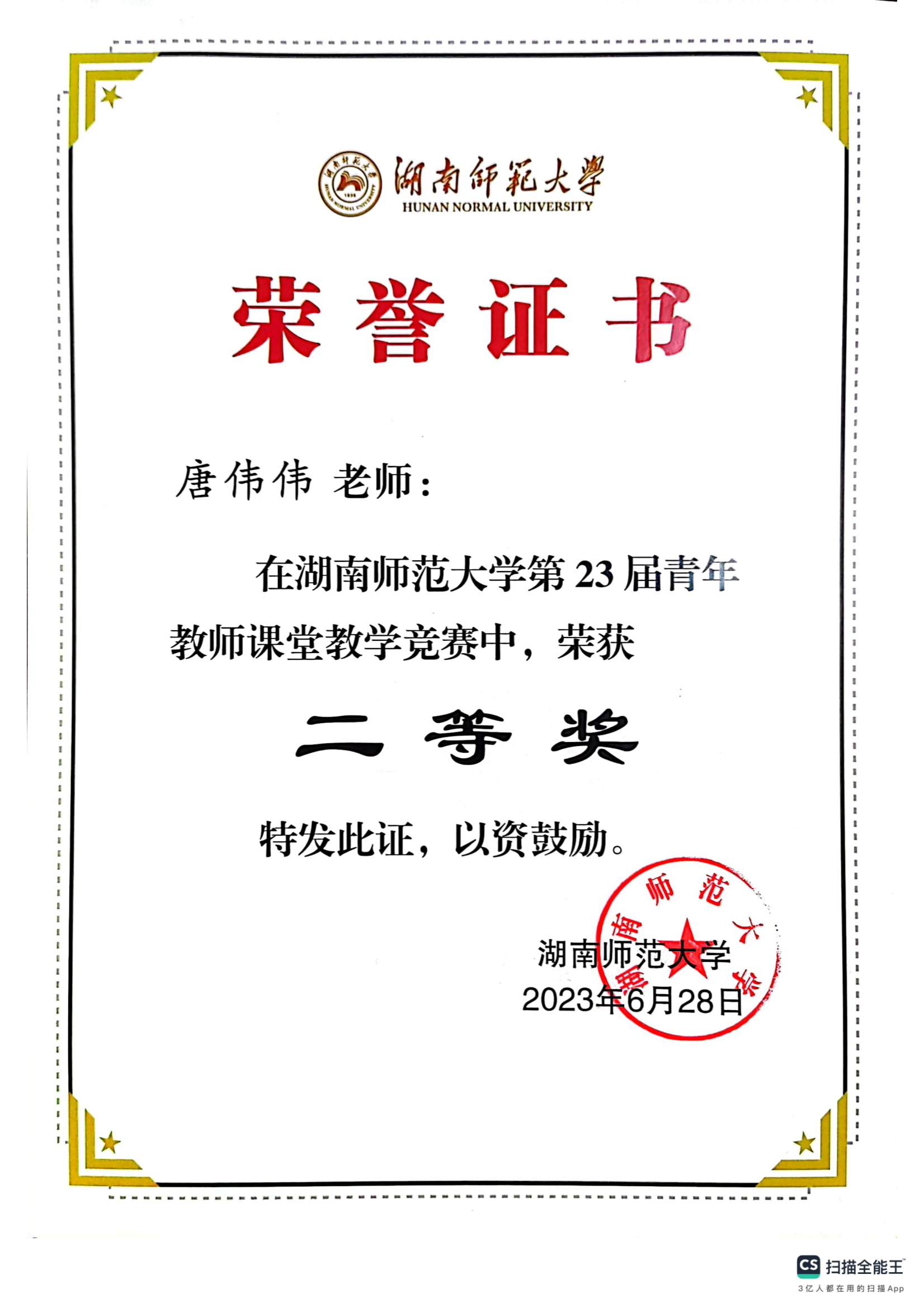 2023年湖南师范大学第23届青年教师课堂教学竞赛