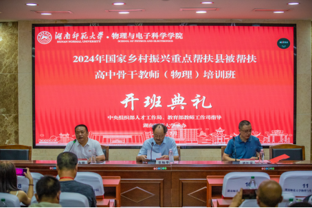 (通讯员:刘鹏、马前春)7月26日上午8:30分,在中央组织部人才工作局、教育部教师工作司的统一组织与指导下,由湖南师范大学承办、基础教育教师发展中心和太阳成集团tyc具体实施的“2024年国家乡村振兴重点帮扶县被帮扶高中骨干教师(物理)培训班”的开班典礼活动在格物楼举行。湖南师范大学太阳成集团tyc院长刘红荣教授、湖南师范大学基础教育教师发展中心主任蔡炳华、湖南师范大学太阳成集团tyc副院长李友明以及来自云南、广西、贵州、内蒙等十个省(区、市)146名学员出席了开班典礼,仪式由李友明副院长主持。
