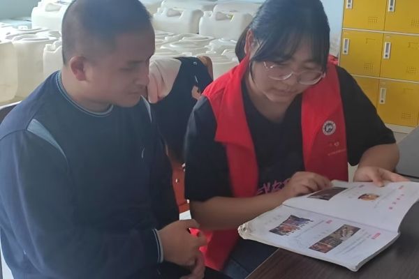 志愿者陪同心智障碍者阅读