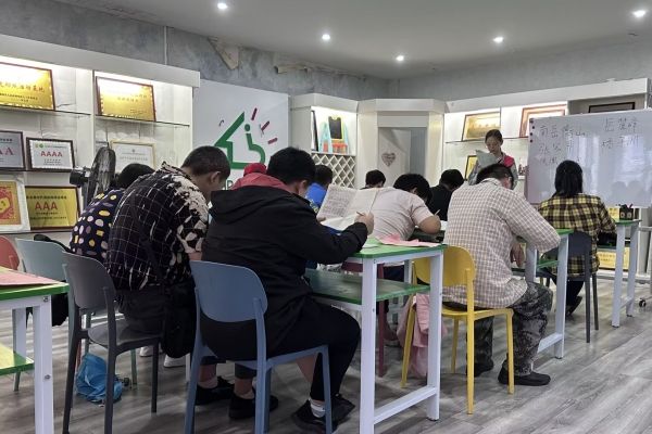志愿者们教导心智障碍者