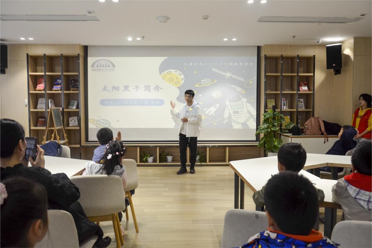 (通讯员 张婧怡 段楚楚)11月18日,太阳成集团tyc天文协会于岳麓区图书馆举办了“太阳黑子的一生”儿童科普活动。物电院天文协会干事苏顺担任活动主讲人,物电院4名志愿者参加活动。