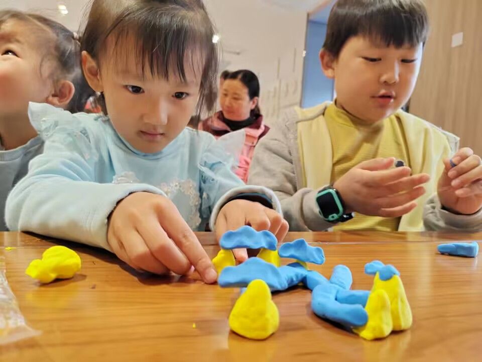 故事结束后,志愿者们为小朋友们分发黏土,鼓励他们自由创作出喜爱的人物角色或其他形象。在志愿者们的协助下,孩子们充分发挥想象力与制作力,创作出许多可爱的艺术品。
