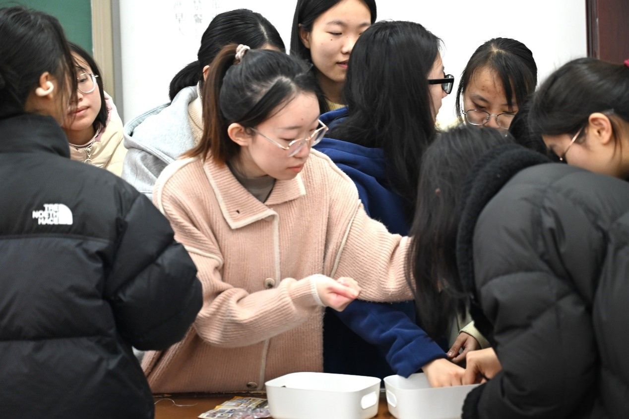 3月15日中午,“珠链织情,缘定你我”活动于格物楼123教室开展。在活动过程中,同学们依次排队领取制作手链的材料及工具,发挥创造力,让一颗一颗珠子在手中变成一串漂亮独特的手链。通过专心编织手链,同学们的压力得以释放,身心得到放松,动手能力得到提升。同时在格物楼124教室进行的“走进女书”活动通过女书文化介绍、知识问答和书法比赛三个环节弘扬源远流长的女书文化,鼓励同学们走进女书,学习古人智慧。