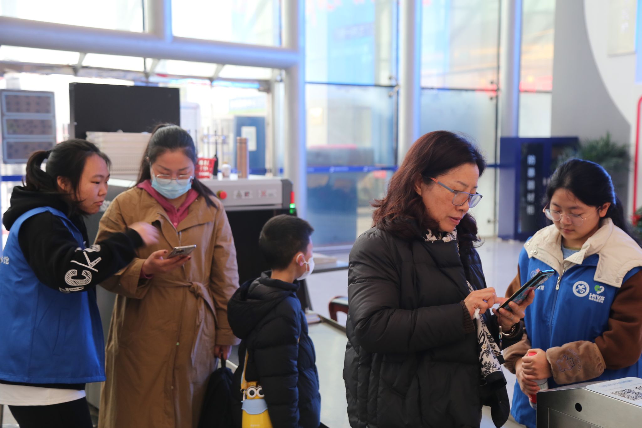 志愿者们检查入场码