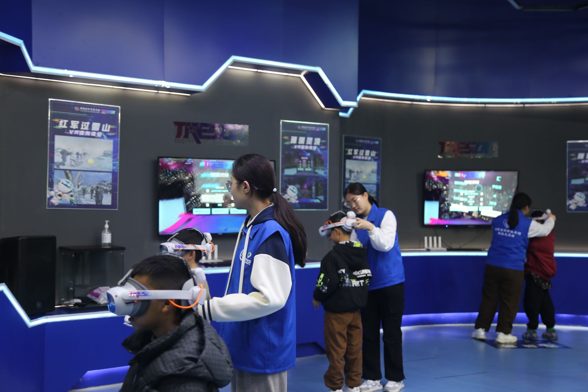 志愿者帮助小朋友体验VR