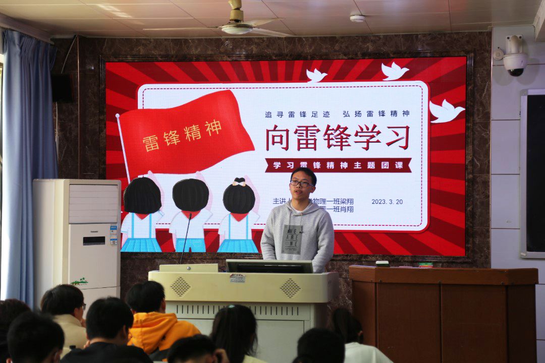 梁翔提到毛主席曾亲笔题写“向雷锋同志学习”,周恩来,邓小平,江泽民等伟人也对雷锋有着高度评价,身为新时代新青年的学员们也应向雷锋学习,弘扬雷锋精神。雷锋精神在大学生活中也无处不在,他结合物电院团委青工部的志愿活动,向学员们介绍了大学生应如何用行动去诠释雷锋精神。