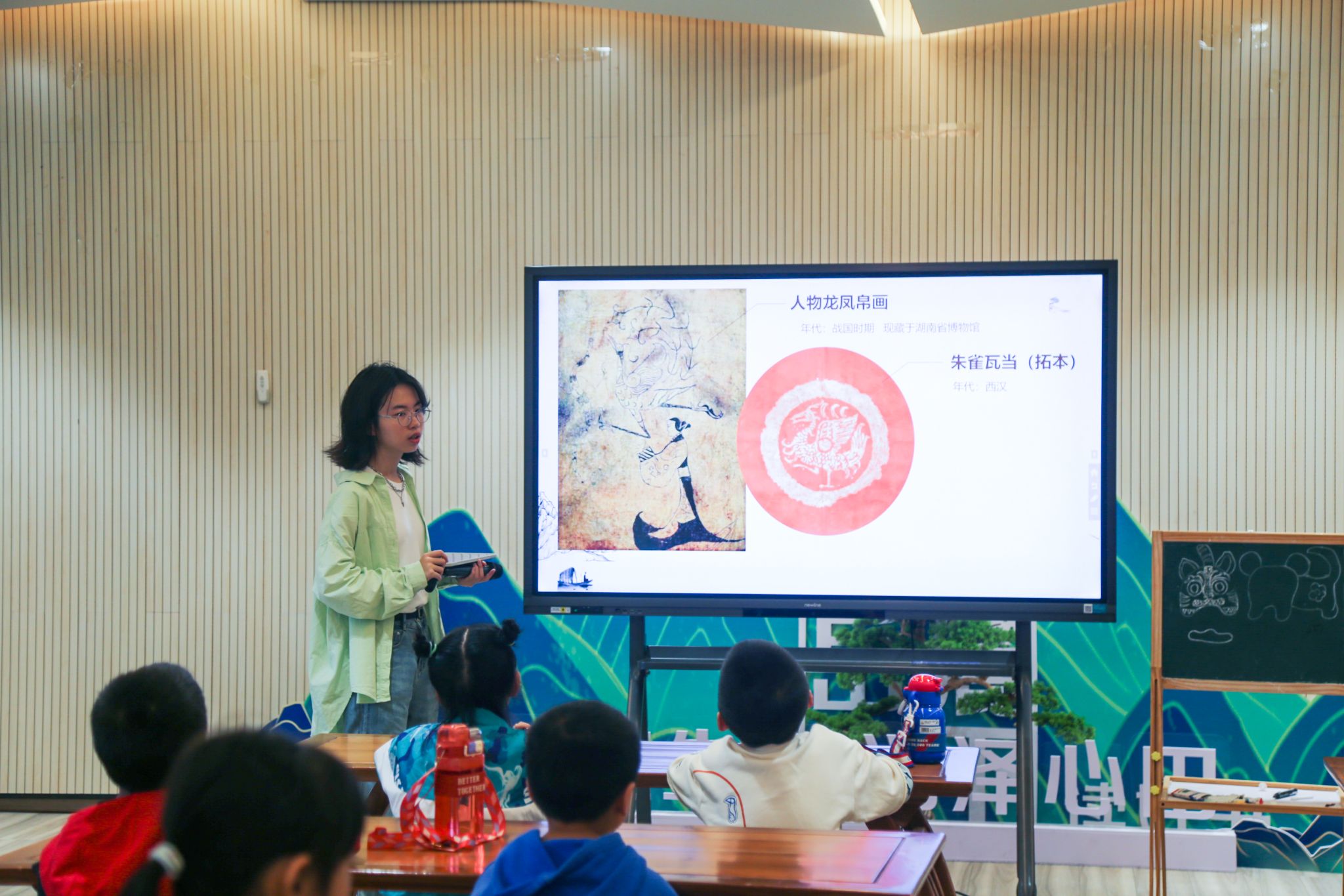 活动一开始,主讲人采用了传统的击鼓传物游戏来活跃现场气氛。每当鼓声停止,手握物品的小朋友便成为焦点,进行简短的自我介绍。这种互动方式拉近了小朋友们之间的距离。随后,天文小课堂正式开始。主讲人通过一幅幅精美的图文资料,向小朋友们介绍了中国古代天文学中凤凰的神秘传说和象征意义。凤凰在中国古代文化中被视为神鸟,象征着吉祥、美好和繁荣。在古代天文中,凤凰也与星座、天文现象等有着密切的联系。小朋友们通过主讲人的讲解,了解到凤凰在古代天文学中的重要地位,对凤凰的神秘传说充满了好奇和向往。最后,为了让小朋友们更好地感受中国古代天文中凤凰的魅力,主讲人组织他们画出自己心中的凤凰。志愿者们将纸笔分发给小朋友们并协助他们完成绘画,小朋友们纷纷拿起画笔,将自己对凤凰的理解和想象展现在纸上。