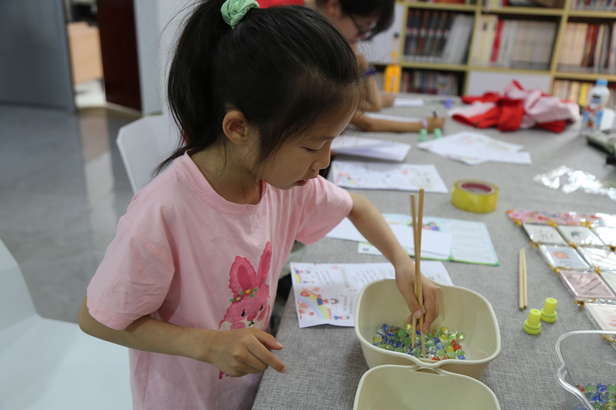 活动开始前,社区工作者与志愿者们提前到达活动室进行现场布置等准备工作。在活动第一个游戏“蒙眼大冒险”中,小朋友们要在蒙住眼睛的情况下,找到藏在活动室里的指定物品;第二个游戏“左手夹豆豆”中,小朋友们要使用非惯用手夹起弹珠,并放入指定容器中。第三个游戏“单手穿衣秀中,小朋友们需要用一只手完成穿衣动作;在最后“献血知识大比拼”中,小朋友们通过趣味问答,学习有关献血的知识。通过三个环节,小朋友们切身体验了残疾人群体日常生活的不便与艰辛,对残疾人群体有了更深的了解,并纷纷表示此次助残日活动十分有趣,希望以后能有更多机会帮助残疾人,传递爱心与温暖。