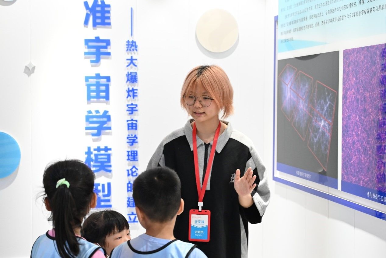 此次活动面向社会公众开展参观讲解,共吸引近200名来自本市的家长及孩子以及近50名本校大学生参与此次天文知识科普日活动。为保证科普活动高效且有效开展,天文协会于不同板块前分别设置讲解员,并在志愿者们的协助下,将参观者们分批次引领进入天文馆参观学习。