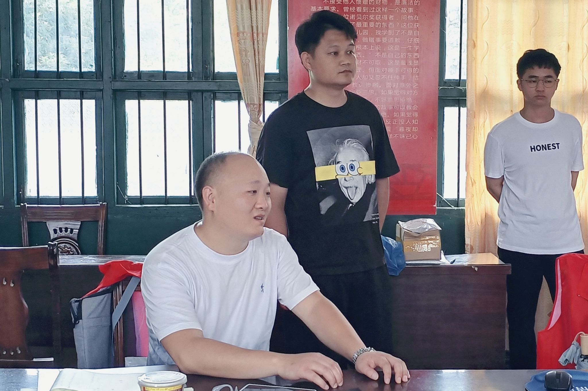 刘鑫与支教队员讨论暑期安全工作安排