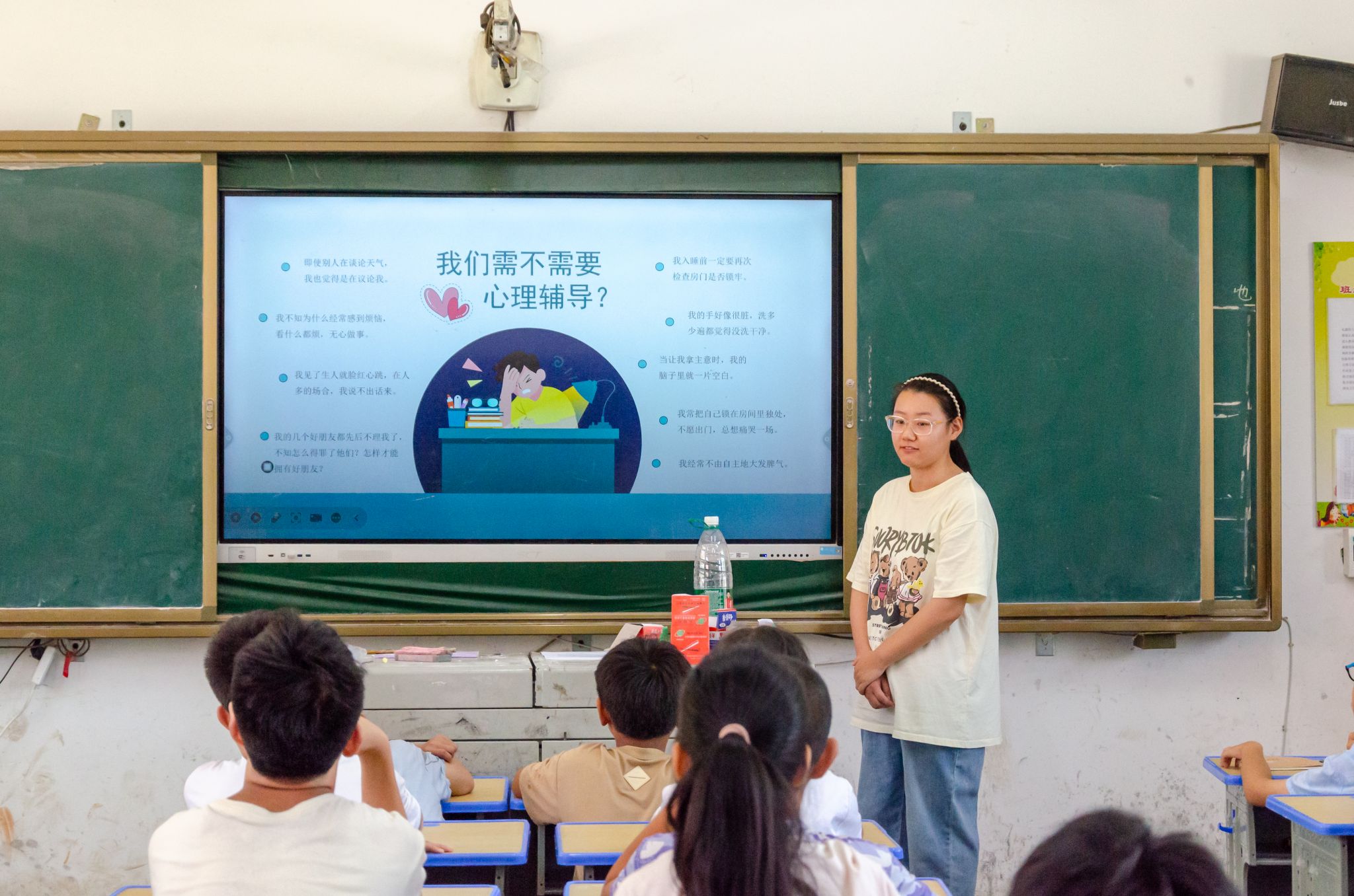(通讯员 张婧怡 谭烨茜)7月17日上午,湖南师范大学太阳成集团tyc(以下简称“物电院”)三下乡“筑梦星辰”社会实践团于娄底市双峰县桥亭中学开展心理健康课程。社会实践团成员葛梦雨担任主讲人。