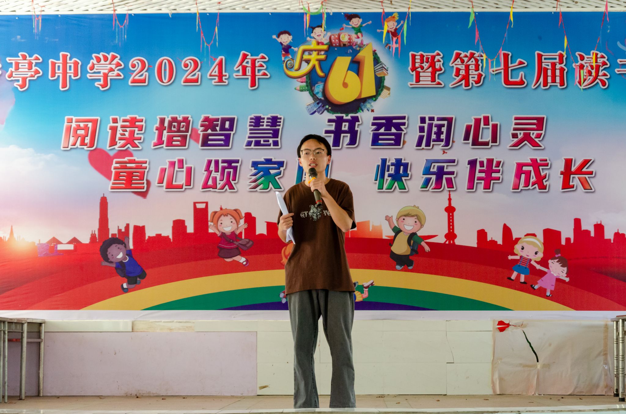 文艺汇演共有7个节目,内容丰富多样,涵盖朗诵,乐器演奏和演唱等多种表演形式。在汇演伊始,桥亭中学的同学们带来了合唱《送别》,歌声悠扬,表达了他们对实践团成员们的不舍和美好祝愿。紧接着,同学们和实践团成员共同完成了诗朗诵《少年中国说》,展现了青春的朝气与担当。在接下来的节目中,同学们纷纷登台献艺,乐器演奏、歌曲演唱等节目轮番上演,赢得现场观众的阵阵掌声。汇演接近尾声时,桥亭中学的同学们再次登台,带来了歌曲《稻香》,为此次文艺汇演画上了圆满的句号。