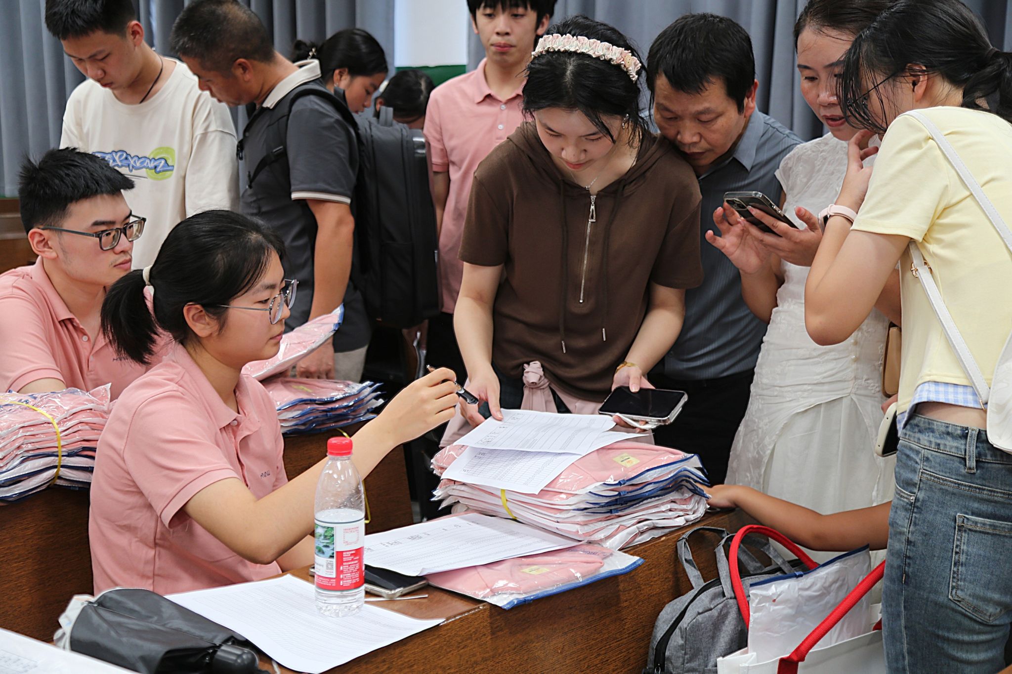 迎新志愿者给新生发放文化衫