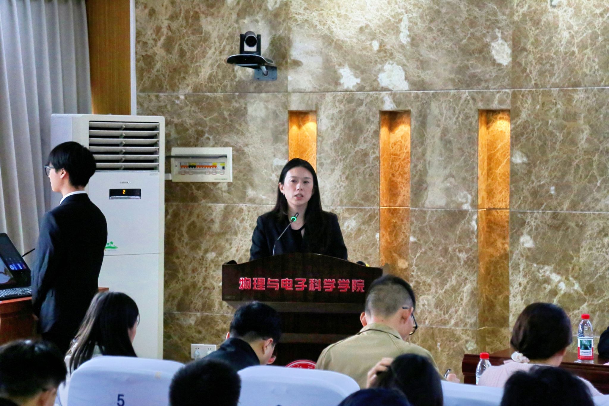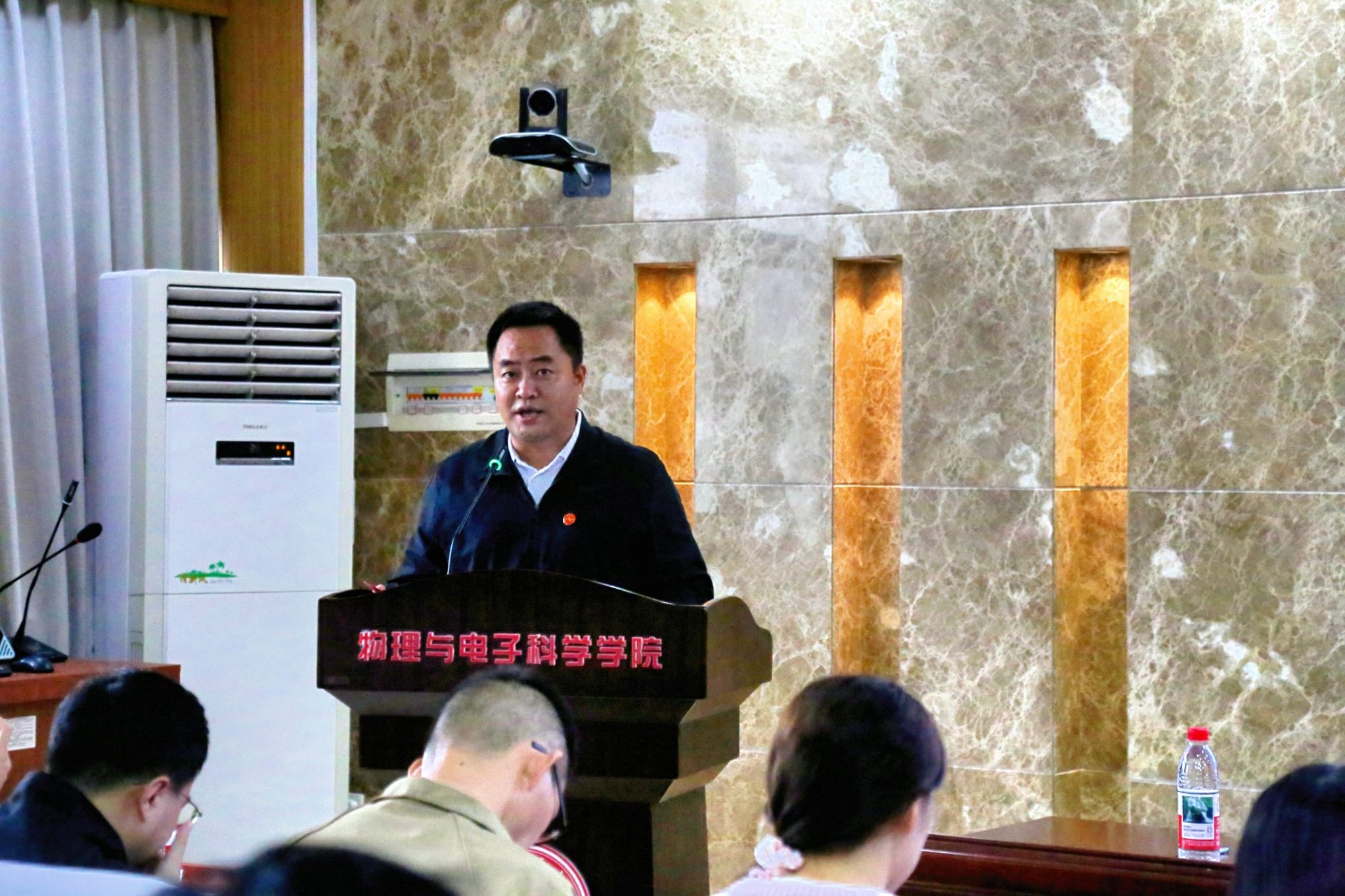 胡滢代表校团委对关心支持学校共青团工作的物电学院表示感谢。她指出,物电学院团学系统立足自身优势,在团学工作方面和创新创业领域取得了突出成果,引用毛泽东同志话语,提出三点希望,即筑牢理想信念、坚持接续奋斗、勇于开拓创新,鼓励物电学子提升核心竞争力。