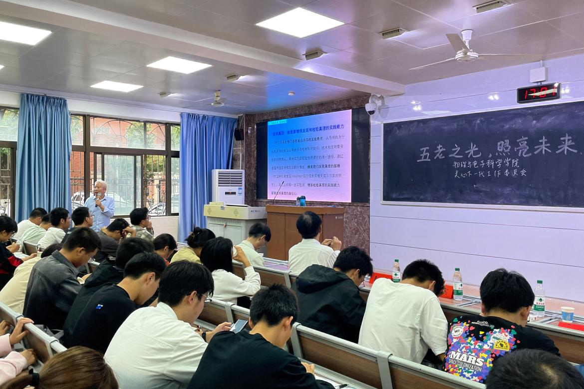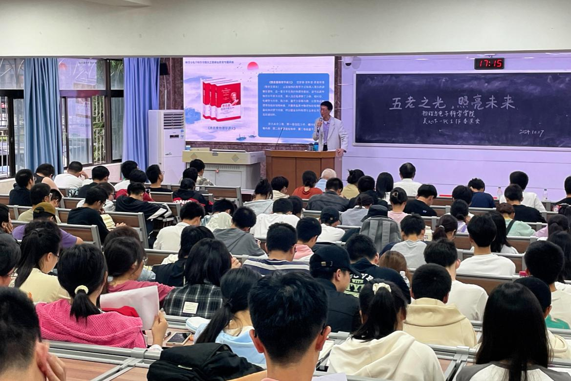 海文华从物理学与各个学科之间的关系出发,指出物理学在各个领域的重要性。他将物理学中的基本科学方法迁移到同学们的学习生活中,鼓励学生追求真理,顺应自然和社会发展的客观规律,使用符合科学原则的途径和手段,实现“德谋并举,学好物理”。同时,他从三个角度教育同学们如何追求真理,希望新生要热爱物理、追求真理,为提高全民科学素质贡献自己的一份力量。