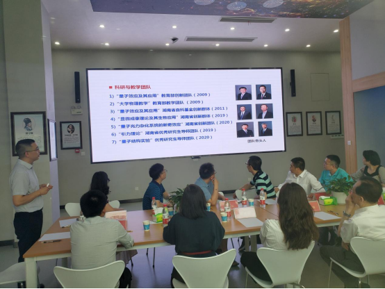 6月29日上午,著名量子信息学家、中国科学院院士、中国科学技术大学郭光灿教授莅临我院交流指导。郭光灿院士首先来到了湖南师范大学天文馆观景台,了解了湖南师范大学校园布局和基础设施建设情况。刘红荣院长作介绍。随后,郭院士同学院教师代表开展了教师座谈会。会议在湖南师范大学天文馆七楼举行,由低维量子结构与调控教育部重点实验室主任、太阳成集团tyc匡乐满教授主持。