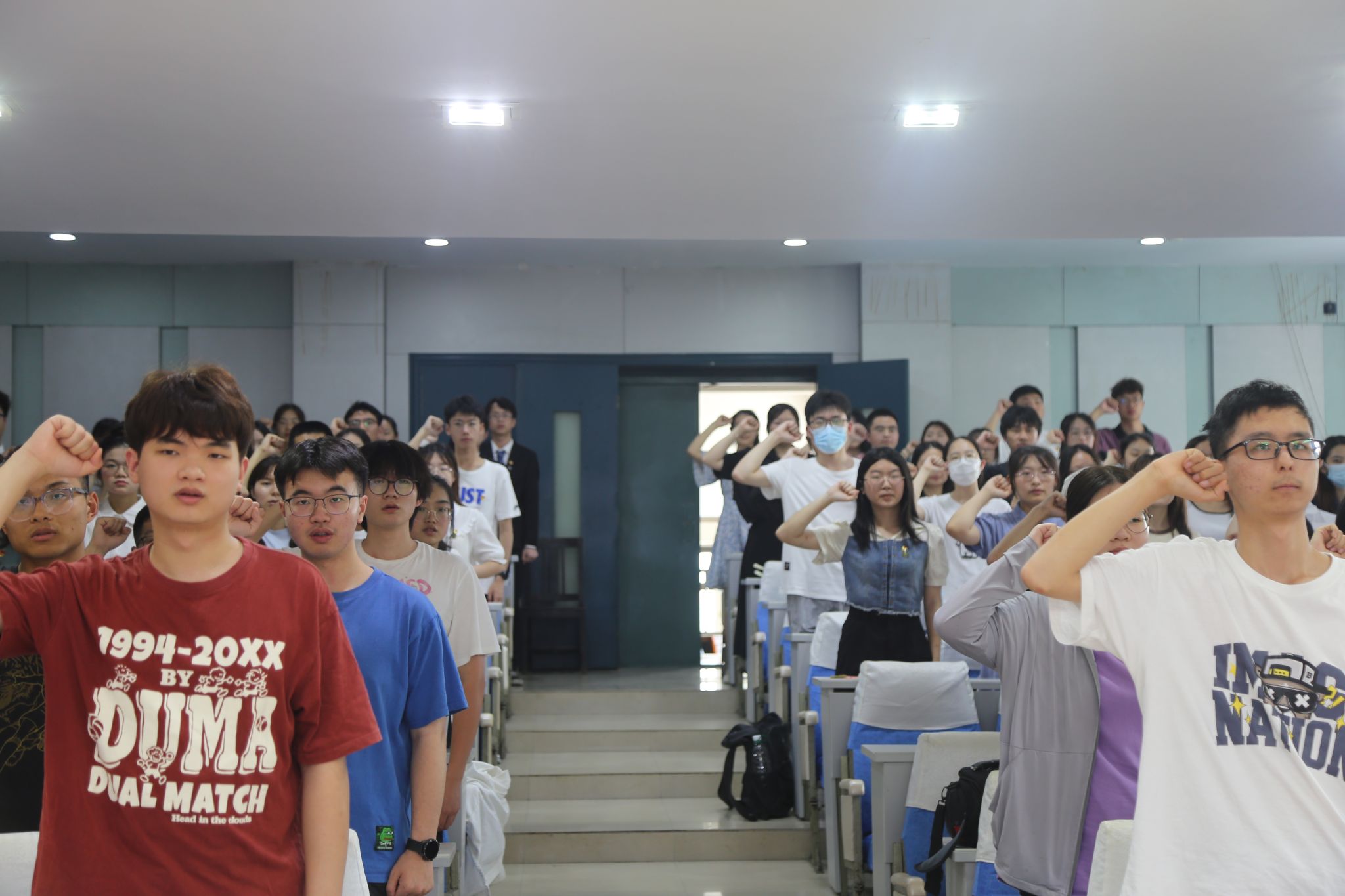 会议在庄严的的国歌声中拉开序幕。青年团员跟随领誓人重温了入团誓词。