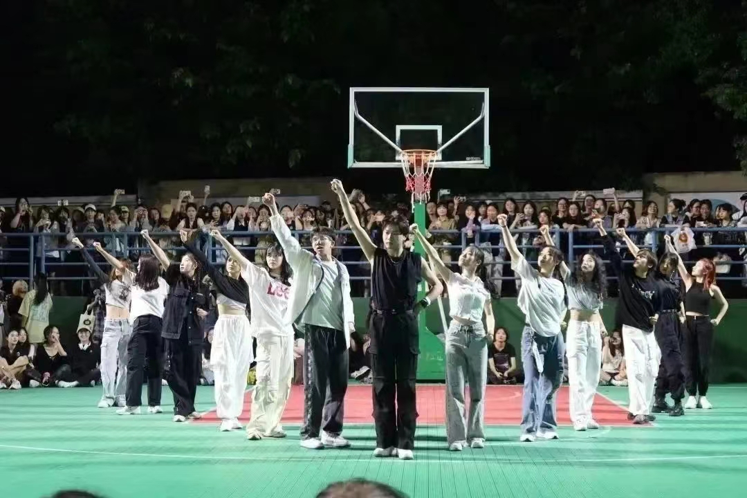 4月16日晚,太阳成集团tyc双馨艺术团于天马学生公寓篮球场举办“运动青春,畅舞师大”校园舞蹈活动。