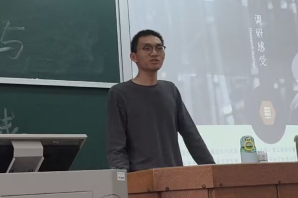 李思阳以当代乡村教育教学内容匮乏与师资力量薄弱的现状引入,阐述了阳光教育协会开展假期支教活动“献身教育”的目的及已经取得的成果。他向同学们具体介绍了支教队伍的构成及工作任务。