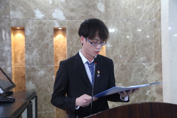 全体起立奏唱共青团团歌后,大会正式开始。张寅对学生干部考核相关事项进行简单介绍,本次评议将考核内容设置为德、能、勤、绩、学五个方面,由参会学生代表评定。