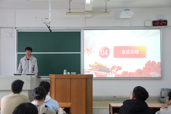 学生会主席团成员肖建军对大会进行总结。他向干事们提出要在保证学习成绩的前提下,保持积极向上的态度,尽心尽力地完成学生工作。他建议同学们在今后的学生工作中,勤反思,去发现问题,思考问题,正确对待创新,把握尺度和目标,注重创新的可行性与实效性。