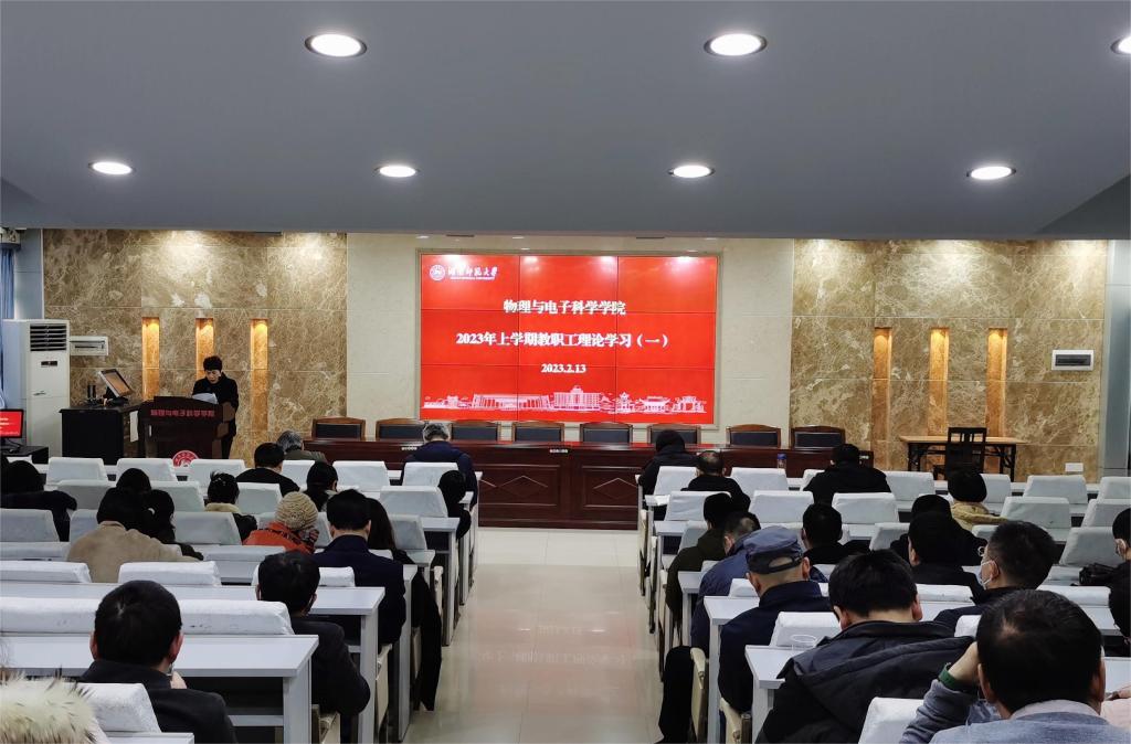 2月13日下午,学院在格物楼509报告厅召开2023年新学期教职工大会,总结2022年学院工作,并对新学期各项工作进行了全面部署安排。校纪委书记姚春梅教授,原副校长、低维量子结构与调控教育部重点实验室主任匡乐满教授出席会议,会议由副院长李友明主持。