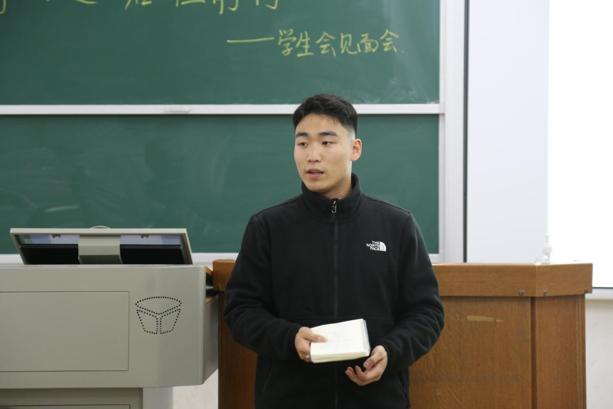郭铭伟对同学们生活、学习及部门工作等方面做出相关指导。他倡导同学们在大学生活中以学业为重,发奋努力,坚持不懈,认真做好大学生涯的规划工作,在学习之余要积极锻炼身体,与全体成员共同建设更好的学生会。