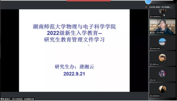 (供稿人 温文玉)2022年9月20日至9月23日,我院举行2022级研究生新生入学教育活动。本次研究生新生入学教育活动包含爱校荣校爱院荣院教育、研究生思想政治教育、学术道德规范和安全教育、规范管理教育、研究生管理系统操作讲解、研究生会相关情况及活动介绍、学科负责人专业教育、科研入门讲座及个人培养计划制定等活动。