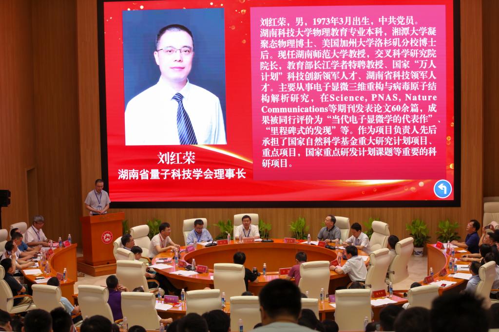 大会通过无记名投票的方式,审议通过了《湖南省量子科技学会章程》、《湖南省量子科技学会会费收取和使用管理办法》、《湖南省量子科技学会会员管理办法》、《湖南省量子科技学会财务管理制度》、《湖南省量子科技学会印章使用管理办法》,并选举产生第一届理事、常务理事、理事长、副理事长、秘书处工作人员。学会新任理事长湖南师范大学交叉学科研究院院长刘红荣教授发表就职演说,他指出湖南量子科技学会的成立将为我省相关领域的科技工作者提供广阔的交流平台,促进量子科技与电子技术、信息科学、材料科学、生命科学、化学、能源科学等学科的交叉融合,助推湖南省量子科技未来产业,服务湖南实施“三高四新”战略需求。
