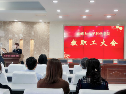 4月29日上午,学院在509报告厅召开全体教职工大会,宣布干部任命。校纪委书记姚春梅、校党委组织部部长沈又红、原副校长匡乐满出席会议。会议由院长唐东升主持。