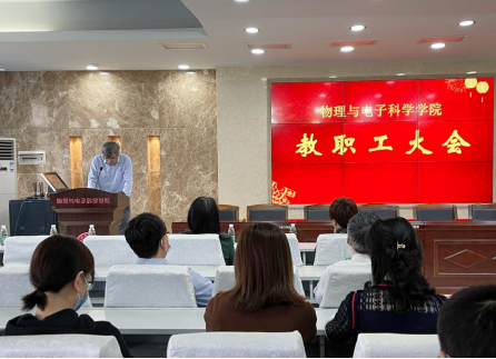 唐东升院长代表学院领导班子和全院教职工表示,完全拥护、坚决服从校党委的决定,对校党委的关心、支持表示衷心感谢,对罗嵘书记的到来表示热烈欢迎。他表示,物电学院办学历史悠久、师资力量雄厚,在今后的工作中一定全力支持和配合罗嵘同志的工作,一同团结凝聚全院师生,坚定不移走特色发展之路,坚持做好现有科研成果转换工作,推动学院进一步实现高质量内涵式发展,为学校“双一流”建设作出新的更大贡献。