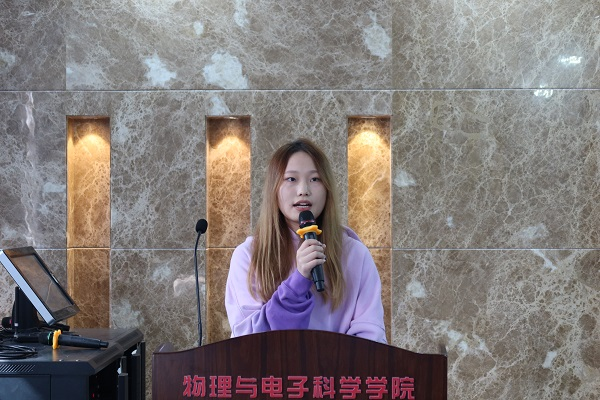 活动伊始,在主持人的带领下,全体起立奏唱团歌。然后物电院团委书记许佳琪上台致辞。她首先介绍三下乡活动的起源,然后提出三下乡活动的三点意义:第一,延续物电院的活力,传承物电院良好的传统;第二,重新审视自己,面对未来,提高站位,增强社会责任感,培养家国情怀;第三,锤炼自身本领,将理论与实践相结合。