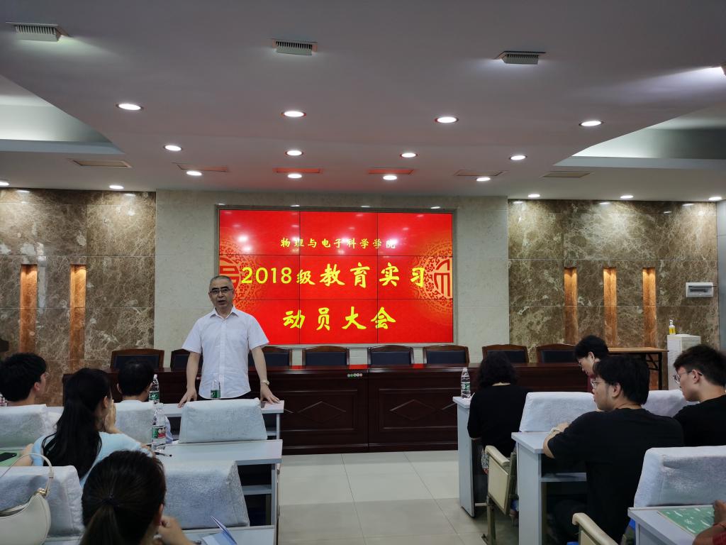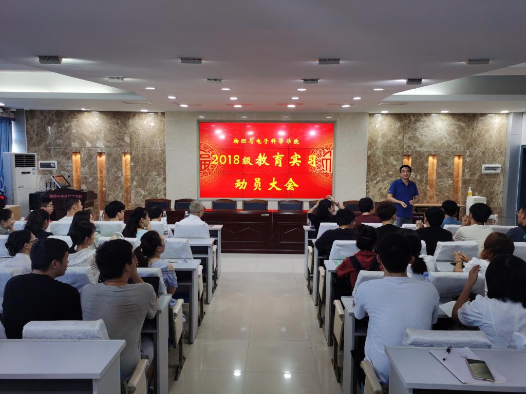 2021年9月22日,太阳成集团tyc在格物楼509报告厅组织召开了2018级教育实习动员大会。出席动员大会的有唐东升院长、康洪书记、钟显辉主任、刘健智主任、2018级辅导员李悦老师、各组实习带队老师、教务办老师及参加教育实习的全体同学。大会由钟显辉主任主持。