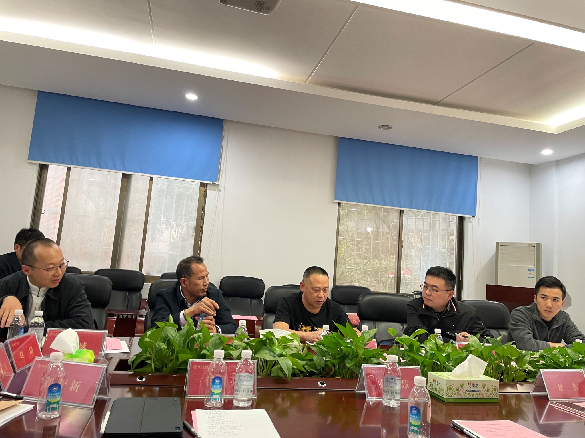 湖南省科技厅前沿技术处一级调研员张小平及相关领导、学院教师代表景辉教授、任昌亮教授、彭智慧教授、翟亚新教授等参加座谈会。