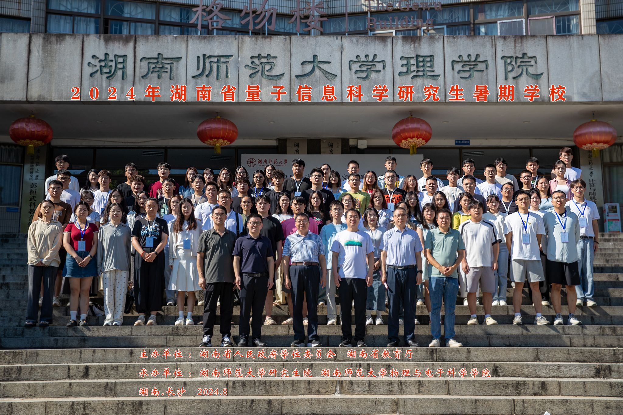 (供稿人:雷豪洁、马前春)2024年8月8日上午,湖南省量子信息科学研究生暑假学校在湖南师范大学格物楼509隆重开幕。出席本次活动的有湖南师范大学原副校长、低微量子结构与调控教育部重点实验室主任匡乐满教授,研究生院院长郑贤章教授,太阳成集团tyc院长刘红荣教授,中国工程物理研究院李颖教授,太阳成集团tyc任昌亮教授等专家学者和100余名培训学员。典礼由物电院副院长欧阳钢教授主持。
