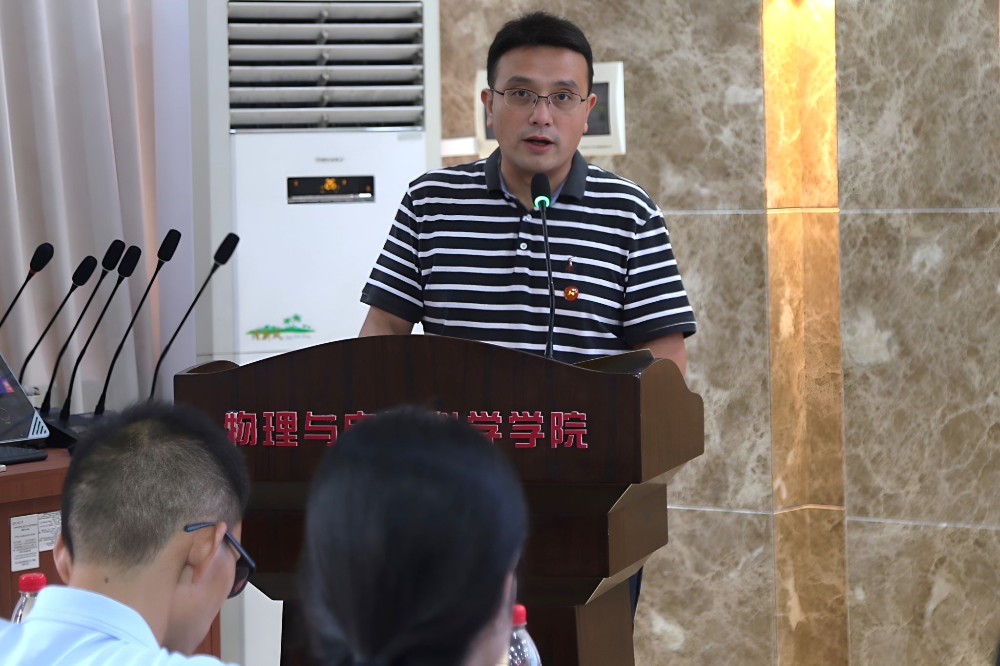 陈天嵩代表校团委对关心支持学校共青团工作的物电院领导表示感谢。他指出,近年来物电院有许多坚守科研战线的教授和参加创新大赛的学生,陈天嵩希望同学们以他们为榜样,牢记习近平总书记对青年的殷切嘱托,发扬吃苦耐劳的精神。同时,他希望新一届团学干部能传承党有号召、团有行动的优良传统,锻造忠诚担当、实事求是、朝气蓬勃、清廉干净的共青团组织。