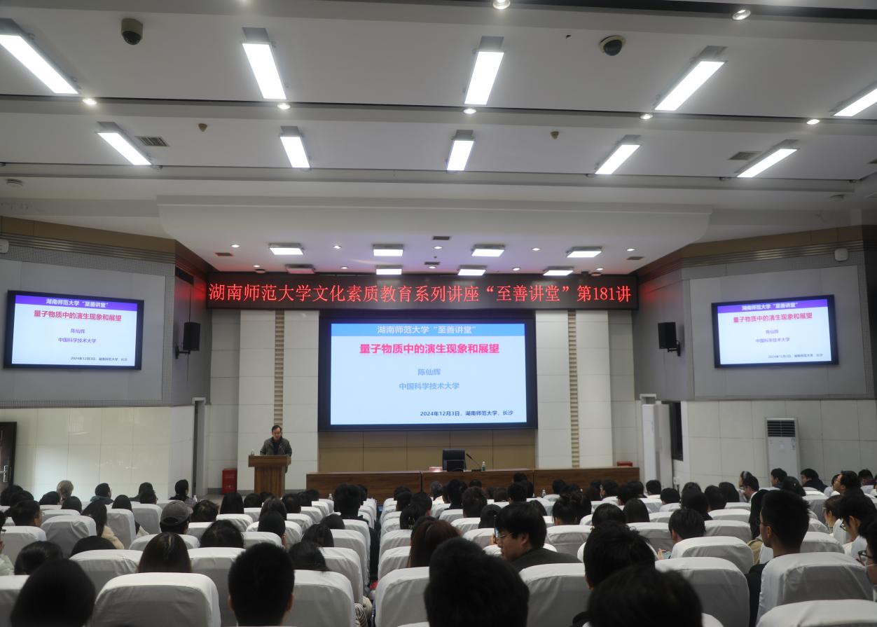 12月3日上午,中国科学院院士、发展中国家科学院院士、中国科学技术大学陈仙辉教授做客“至善讲堂”,为我校师生带来主题为“量子物质中的演生现象和展望”的讲座。副校长潘安练教授主持讲座。