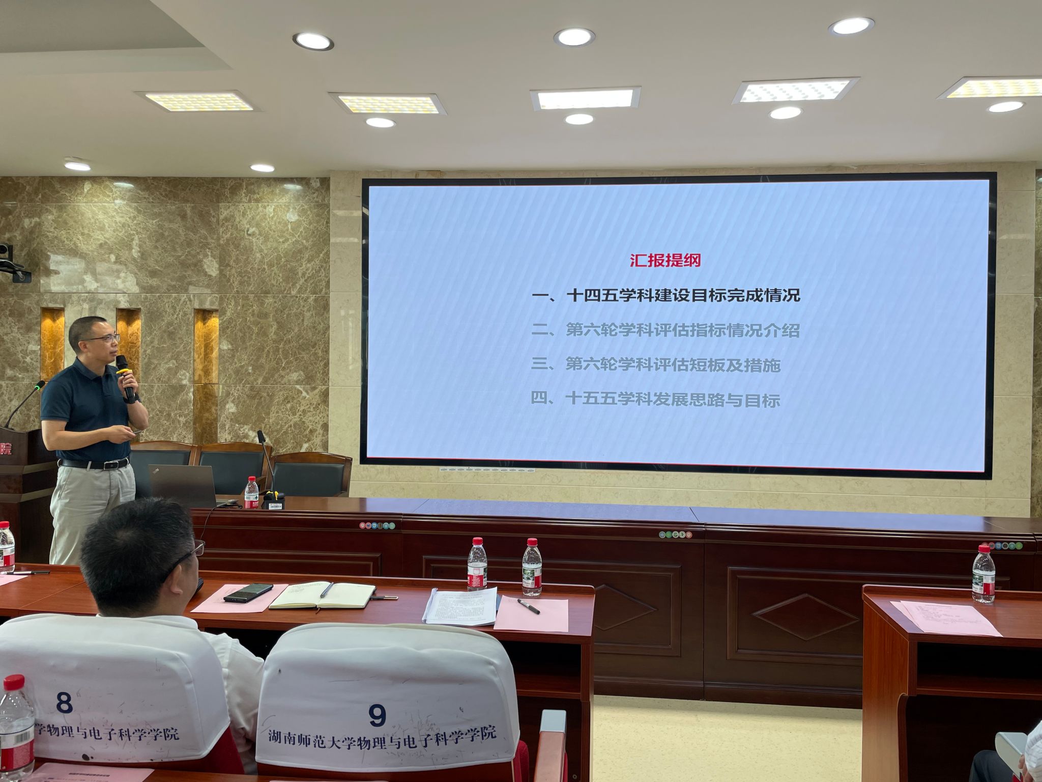 为深入推进学科建设,全面提升学院学科水平,6月24日上午,我院在格物楼509报告厅召开了主题为"决胜‘十四五’,谋篇‘十五五’"的学科建设推进会。会议由物理学学科带头人匡乐满教授主持。学校副校长杨震,发展规划与学科建设处、教务处、研究生院、科学技术处、财务处、资产与实验室管理处等职能部门领导,以及全院教师共同出席会议。