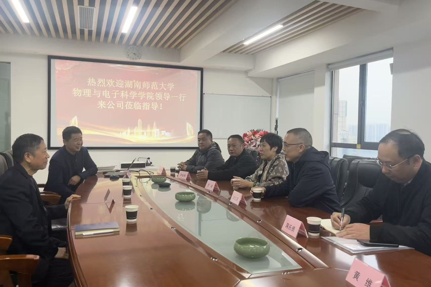 学院领导一行在公司董事长、我院物理系1991级校友王睿的陪同下,实地参观了企业办公环境、技术研发中心,深入了解公司的发展历程、业务领域与企业文化。随后,双方举行了合作交流座谈会。