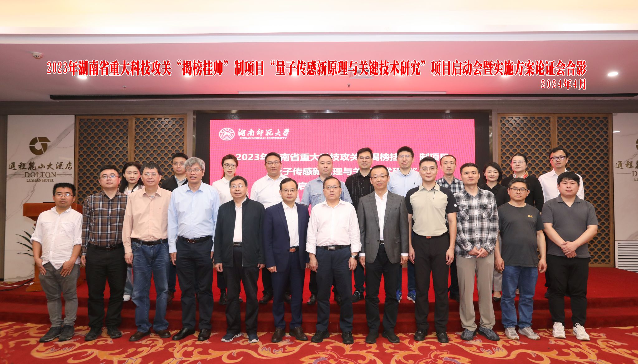 (彭美瑜 供稿)2024年4月16日,由我校景辉教授作为项目负责人,湖南师范大学牵头联合国防科技大学、长沙量子测量产业技术研究院有限公司共同承担的2023年湖南省重大科技攻关“揭榜挂帅”制项目“量子传感新原理与关键技术研究”项目启动会暨实施方案论证会在长沙召开。