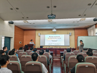 在学术交流环节,曹教授为我院师生带来了一场题为“Entropy constraints on effective field theory”的精彩报告。报告会由物理系系主任钟显辉主持。报告内容深入浅出,既涵盖了前沿的学术理论,又结合生动的实践案例,引发了与会师生的热烈讨论。在回答问题的过程中,曹教授还简要介绍了北京大学物理学院在人工智能与物理学结合的最新探索和成果,并表示期待未来能与我院开展更加深入、广泛的交流与合作。