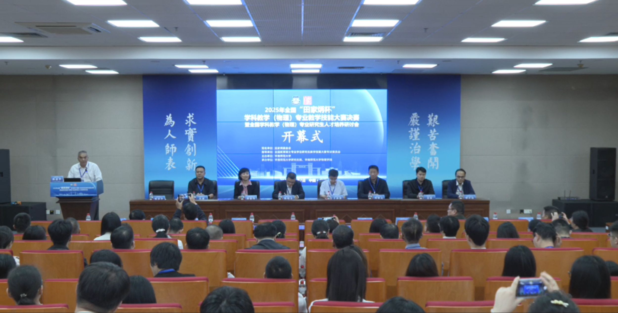 全国“田家炳杯”学科教学(物理)专业教学技能大赛由全国教育硕士教育指导委员会主办,目前是国内层次最高、规模最大、影响最广的全国性竞赛之一。比赛的初赛采用的是“教学设计+片段教学”通讯评审的形式,约前50%进入决赛。决赛采用“15分钟课堂教学+现场答辩”的形式,采取评委、选手双匿名模式,要求选手现场抽题并在120分钟内完成备课。