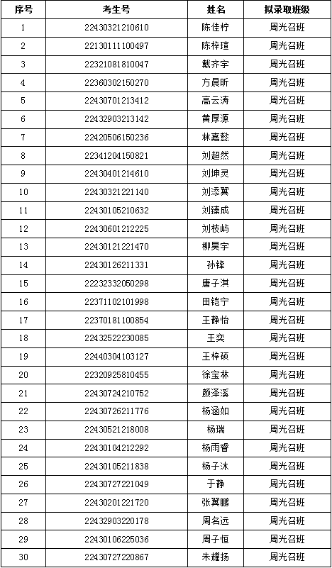 世承书院-太阳成集团tyc2022级周光召班拟录取学生名单(按姓名音序排序)